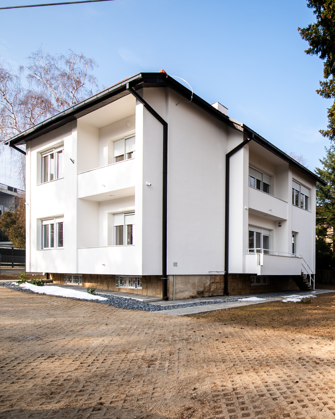 ✔️ Уређено је двориште са паркингом, уграђеним системом за наводњавање и формирањем травњака уз садњу украсног биља.