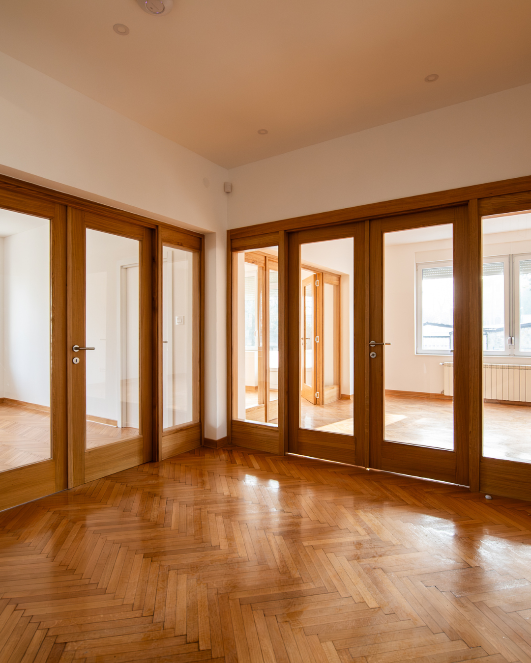 ✔️ Уграђена је керамика, извршена санација постојећих подова и уграђен храстов паркет у делу објекта.